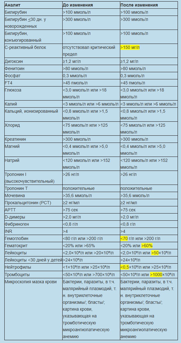 Сообщаем, что мы пересмотрели и обновили критические значения результатов исследований, выполняемых в лаборатории SYNLAB. Критические значения — это результаты лабораторных анализов, которые могут указывать на жизнеугрожающие нарушения состояния пациента. Поэтому крайне важно, чтобы лаборатория незамедлительно уведомила лечащего врача или медсестру пациента, которые смогут принять решение о дальнейших действиях.
