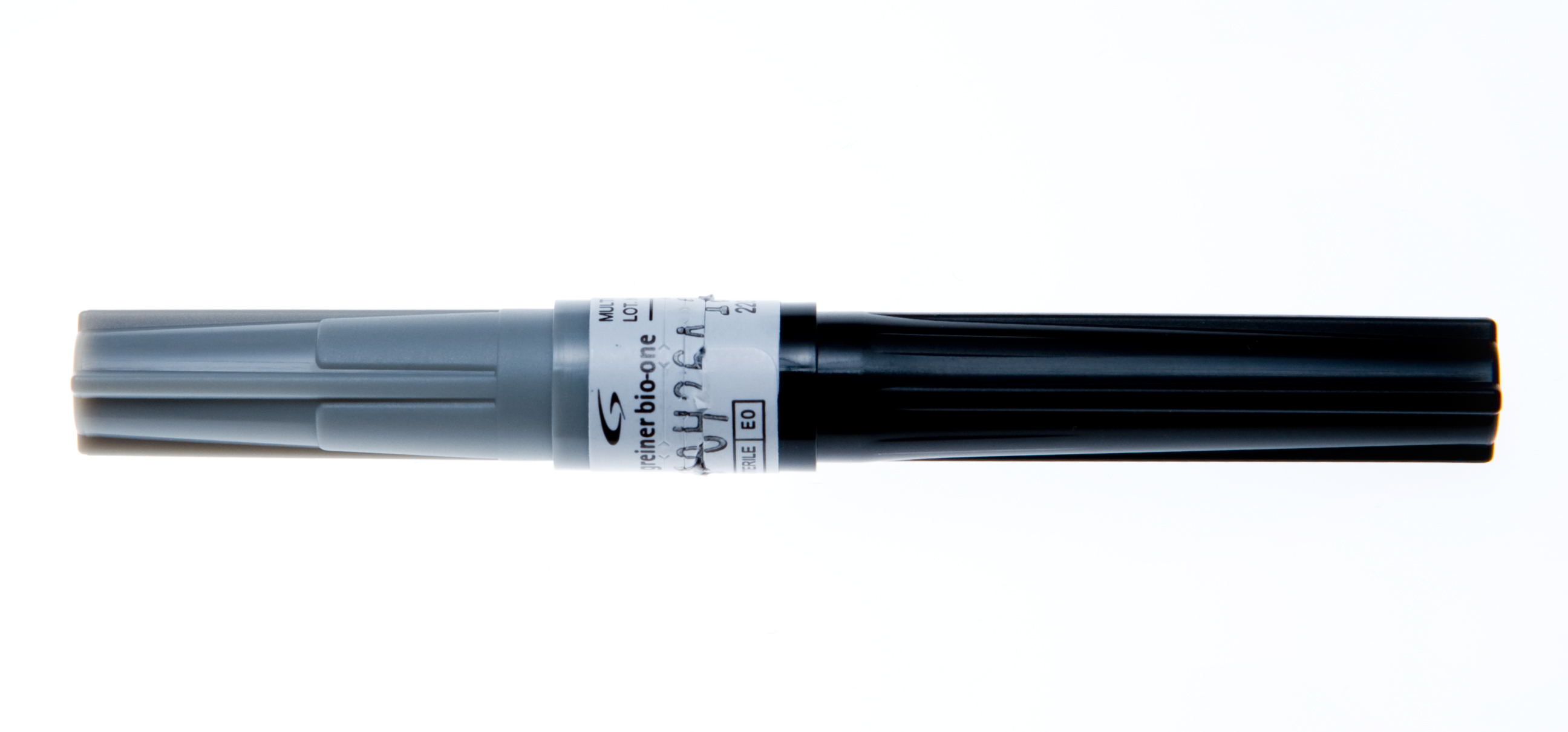 - Латексный колпачок закрывает иглу и препятствует вытеканию крови в момент смены пробирки.